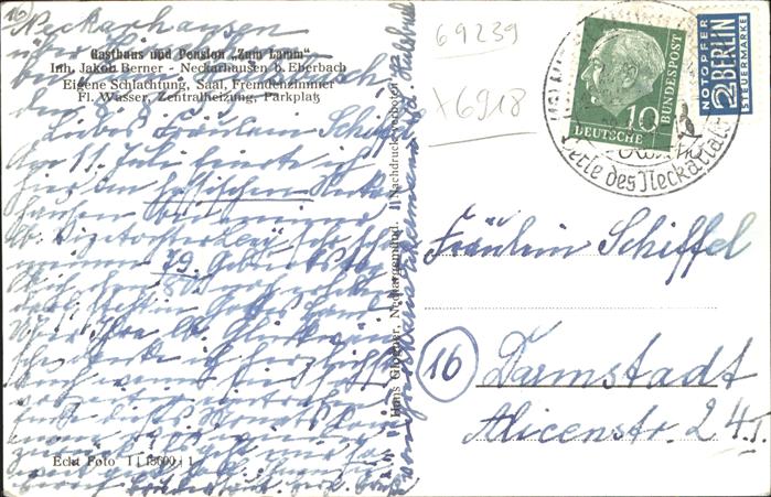 41241308 Neckarhausen Edingen Luftbild Pension Lamm postalisch gelaufen gute Erhaltung Alte Ansichtskarte Postkarte alte Postkarte Chri Katcode 11110008226105