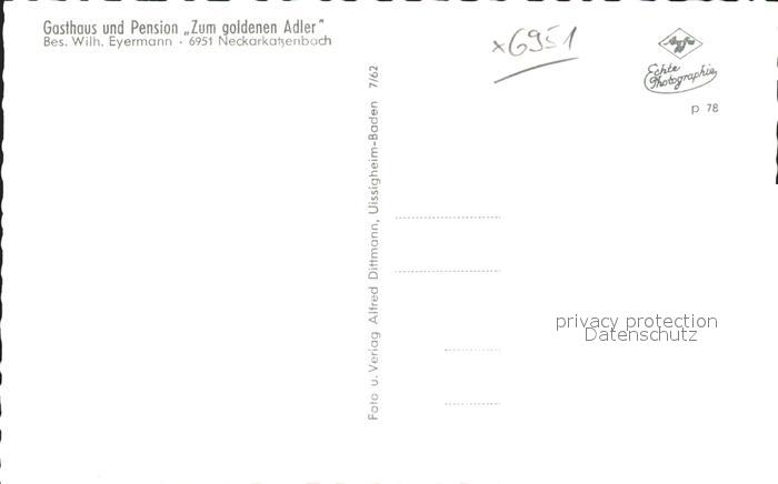 41796402 Neckarkatzenbach Gasthaus Pension Zum goldenen Adler postalisch nicht gelaufen Erhaltung siehe scans KatCode: 11110008225068