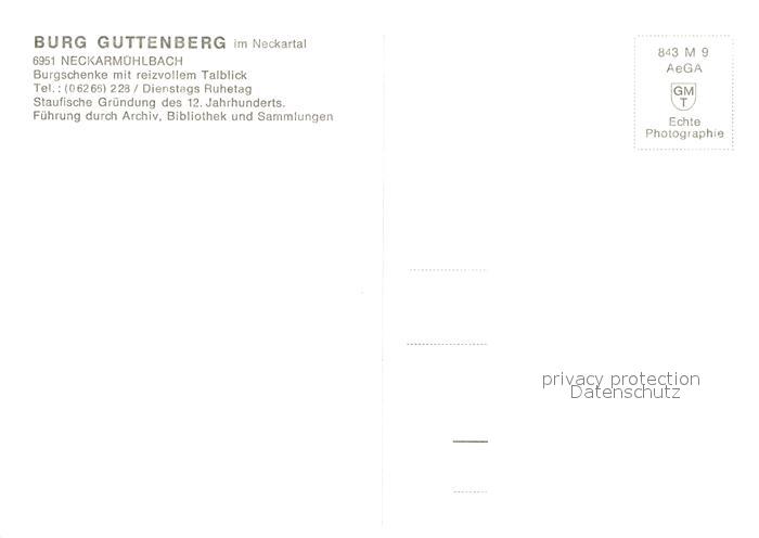 72985641 Neckarmuehlbach Burg Guttenberg Burgschenke Fliegeraufnahme postalisch nicht gelaufen Erhaltung siehe scans [FriedD77] KatCode: 11110008225033