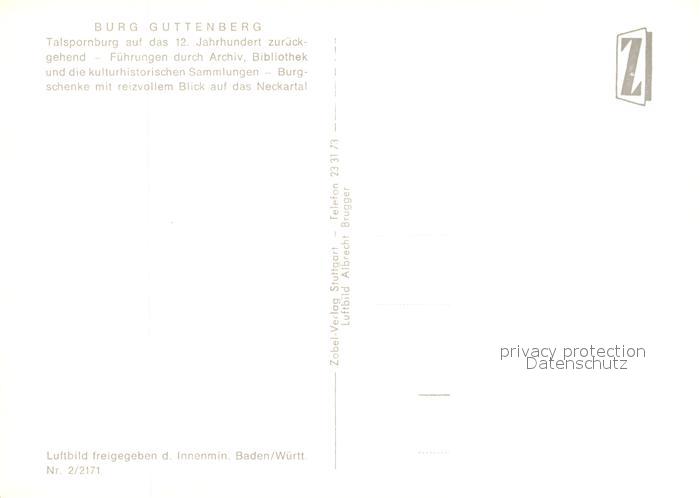 73322981 Neckarmuehlbach Burg Guttenberg Fliegeraufnahme postalisch nicht gelaufen Erhaltung siehe scans [WerneD78] KatCode: 11110008225033