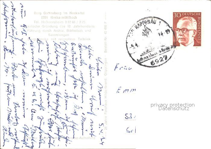 72574375 alte Postkarte Neckarmuehlbach Burg Guttenburg postalisch gelaufen Erhaltung siehe scans [KathaD79] KatCode: 11110008225033