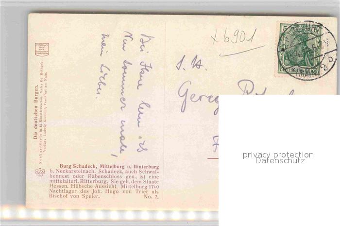 42874426 alte Postkarte Neckarsteinach Burg Schadeck Mittelburg Hinterburg Kuenstlerkarte postalisch gelaufen Erhaltung siehe scans [KathaD81] KatCode: 11110006431018
