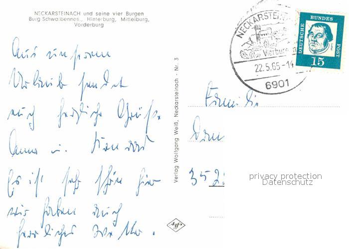 72844667 alte Postkarte Neckarsteinach Burg Schwalbennest Hinterburg Mittelburg Vorderburg postalisch gelaufen Erhaltung siehe scans [KathaD81] KatCode: 11110006431018