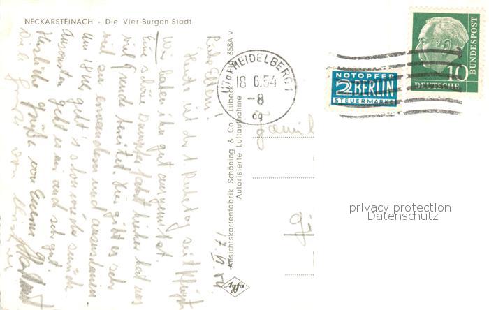 73804048 alte Postkarte Neckarsteinach Die Vier Burgen Stadt Fliegeraufnahme postalisch gelaufen Erhaltung siehe scans [WerneD78] KatCode: 11110006431018