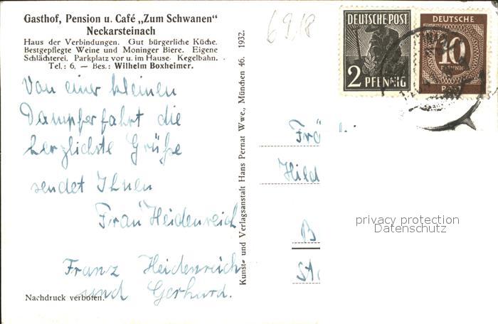 31731291 alte Postkarte Neckarsteinach Gasthaus Pension Cafe zum Schwanen postalisch gelaufen KatCode: 11110006431018