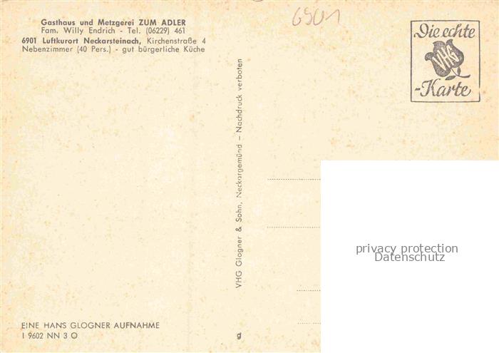 74048728 Neckarsteinach Gastshaus Adler Burg Panorama Gastraeume postalisch nicht gelaufen Erhaltung siehe scans [WerneD78] KatCode: 11110006431018
