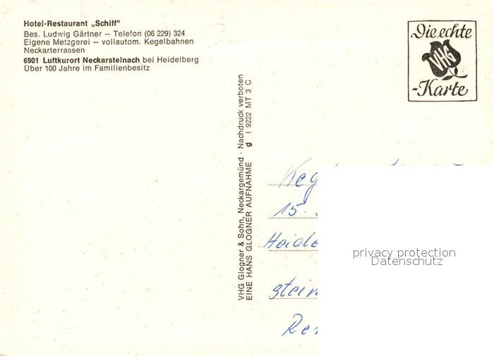 73324430 Neckarsteinach Hotel Restaurant Schiff Kegelbahn postalisch nicht gelaufen Erhaltung siehe scans [FriedD77] KatCode: 11110006431018