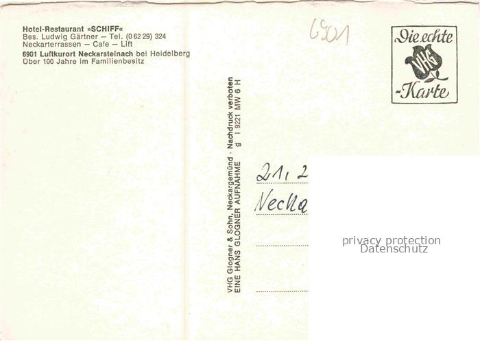 74048569 Neckarsteinach Hotel Restaurant Schiff Neckarpartie postalisch nicht gelaufen Erhaltung siehe scans [WerneD78] KatCode: 11110006431018