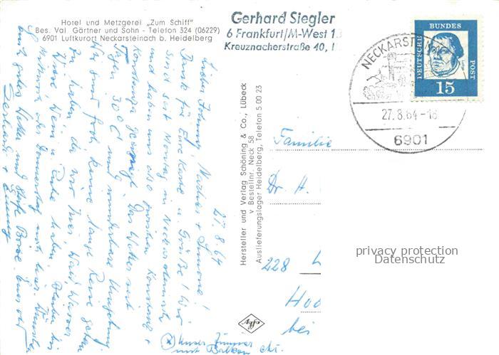 74048641 alte Postkarte Neckarsteinach Hotel zum Schiff postalisch gelaufen Erhaltung siehe scans [WerneD78] KatCode: 11110006431018