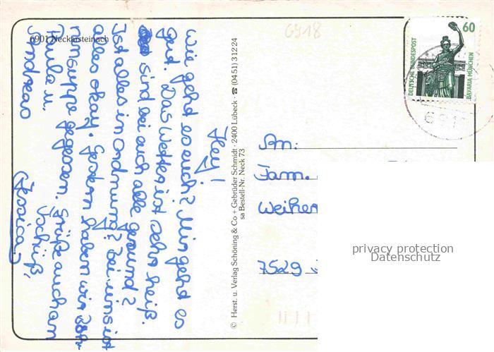 74048819 alte Postkarte Neckarsteinach Kirche Rathaus Neckarpartie postalisch gelaufen Erhaltung siehe scans [WerneD78] KatCode: 11110006431018