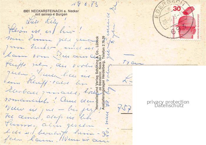 74048682 alte Postkarte Neckarsteinach Neckarpartie mit 4 Burgen postalisch gelaufen Erhaltung siehe scans [WerneD78] KatCode: 11110006431018
