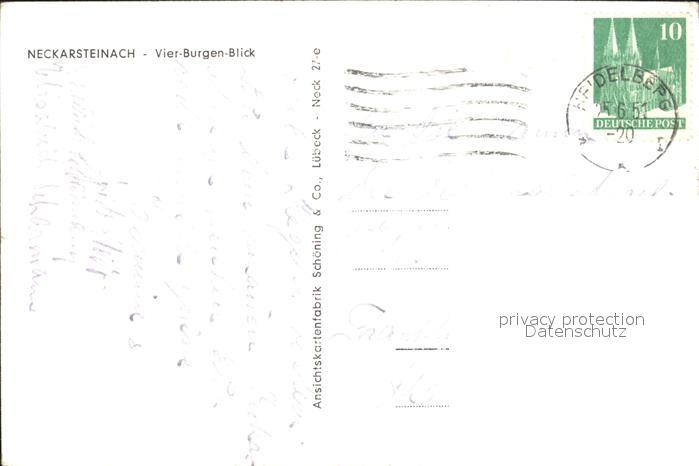 72098314 alte Postkarte Neckarsteinach Vier Burgen Blick postalisch gelaufen Erhaltung siehe scans KatCode: 11110006431018