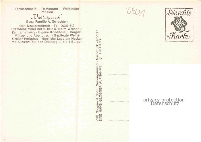 74048614 Neckarsteinach Vierburgeneck Terrassencae Restaurant Weinstube Neckarpartie postalisch nicht gelaufen Erhaltung siehe scans [WerneD78] KatCode: 11110006431018