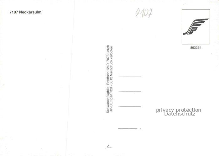 74059434 Neckarsulm BW Fliegeraufnahme postalisch nicht gelaufen Erhaltung siehe scans [WerneD78] KatCode: 11110008125065
