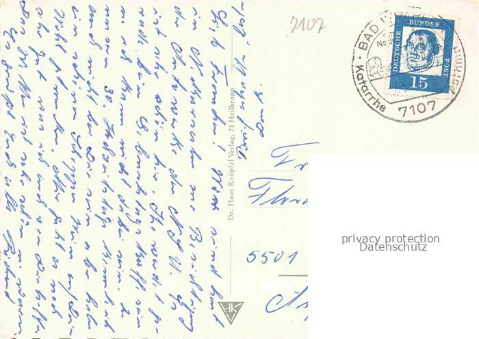 74052801 alte Postkarte Neckarsulm BW Motive Stadtzentrum Weiher postalisch gelaufen Erhaltung siehe scans [FriedD77] KatCode: 11110008125065