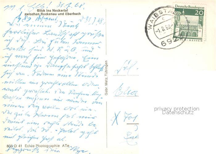 73668602 alte Postkarte Neckartal Fliegeraufnahme mit Rockenauund Eberbach postalisch gelaufen Erhaltung siehe scans [WerneD78] KatCode: 11110008226055