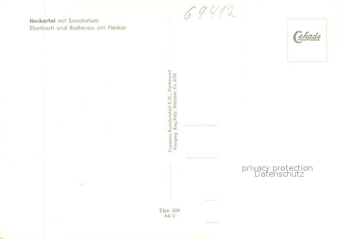 73542209 Neckartal Fliegeraufnahme mit Sanatorium Eberbach und Rockanau am Neckar postalisch nicht gelaufen Erhaltung siehe scans [WerneD78] KatCode: 11110008226055