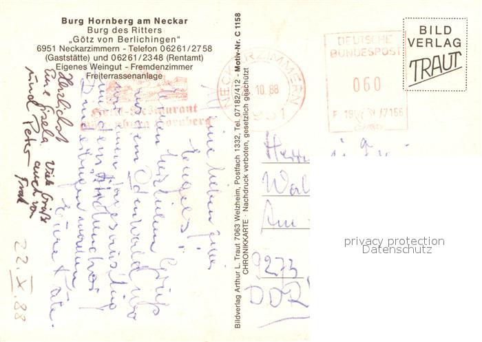 73089168 alte Postkarte Neckarzimmern Burg Hornberg Goetz von Berlichingen postalisch gelaufen Erhaltung siehe scans [NatalD47] KatCode: 11110008225067