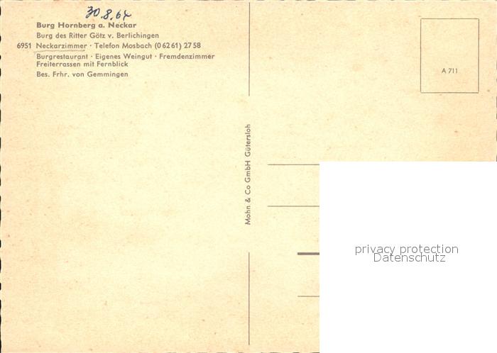 72549010 Neckarzimmern Burg Hornberg Ritter Goetz postalisch nicht gelaufen Erhaltung siehe scans [LiesaD40 kv021box] KatCode: 11110008225067