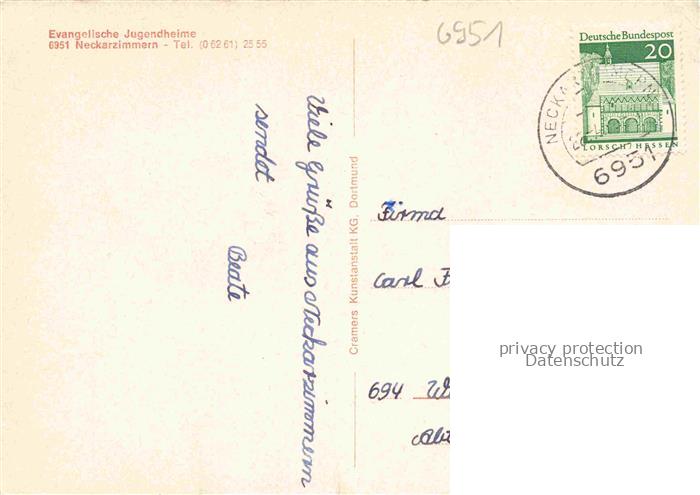 74048268 alte Postkarte Neckarzimmern Evangelische Jugendheime postalisch gelaufen Erhaltung siehe scans [FriedD77] KatCode: 11110008225067