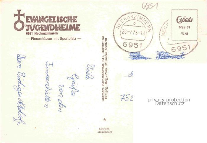 74048251 alte Postkarte Neckarzimmern Evangelische Jugendheime Finnenhaeuser Sportplatz postalisch gelaufen Fliegeraufnahme Erhaltung siehe scans [FriedD77] KatCode: 11110008225067