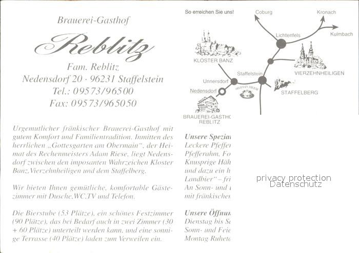 Nedensdorf Brauerei Gasthof Reblitz postalisch nicht gelaufen Werbekarte (keine Postkarte) Erhaltung siehe scans