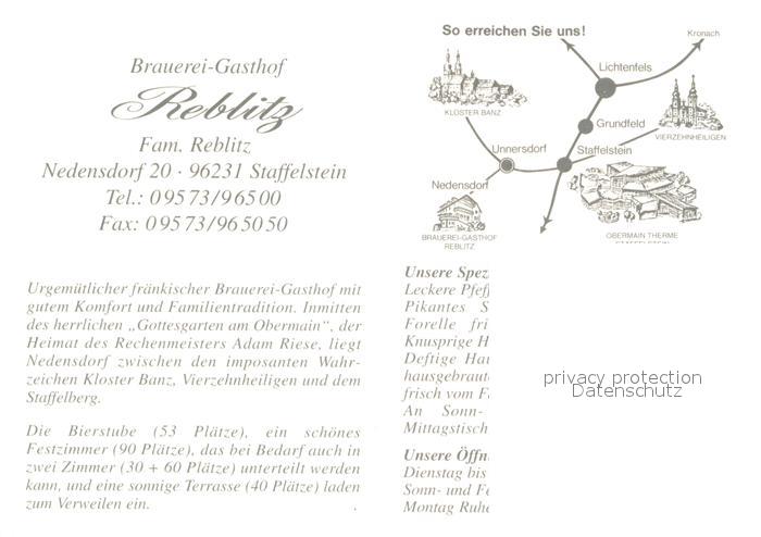 73748108 Nedensdorf Brauerei Gasthof Reblitz Gaststube Brauraum postalisch nicht gelaufen Werbekarte (keine Postkarte) Erhaltung siehe scans [WerneD78] KatCode: 11110009478165