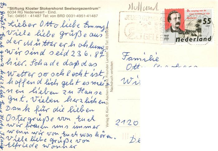 old postcard Nederweert-Eind NL Stiftung Kloster Stokershorst Seelsorgezentrum Gastraeume Zimmer postalisch gelaufen Erhaltung siehe scans [WerneD78]