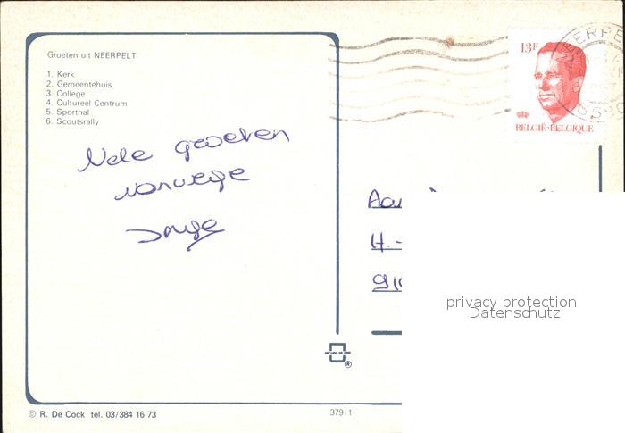 72467281 carte postale Neerpelt Kerk College Sporthal postalisch gelaufen Erhaltung siehe scans KatCode: 11070072001719