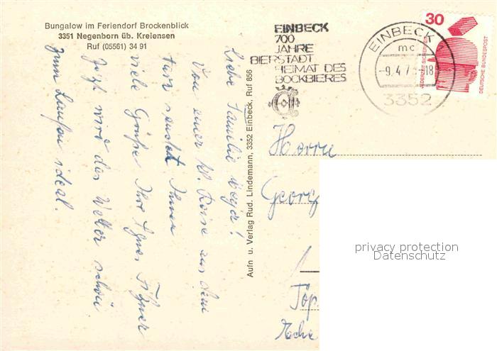 72905932 alte Postkarte Negenborn Einbeck Bungalow und Feriendorf Brockenblick postalisch gelaufen Erhaltung siehe scans [AndreD76] KatCode: 11110003155004