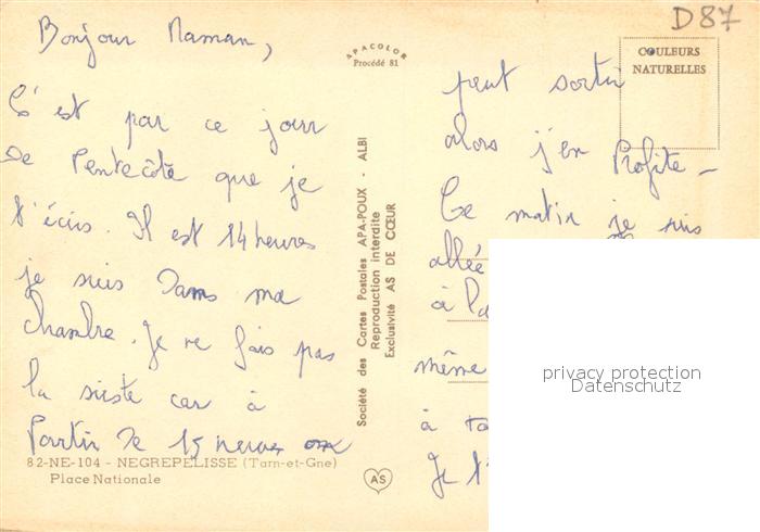 13585639 Negrepelisse Place Nationale postalisch nicht gelaufen Erhaltung siehe scans [KathaD81] Kath Katcode 11170082282134