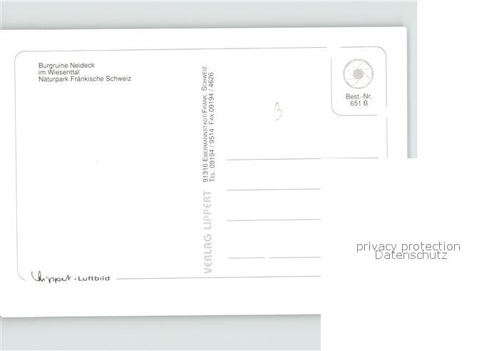 71920203 Neideck Fliegeraufnahme Burgruine im Wiesental Naturpark Fraenkische Schweiz postalisch nicht gelaufen Erhaltung siehe scans KatCode: 11110009474135
