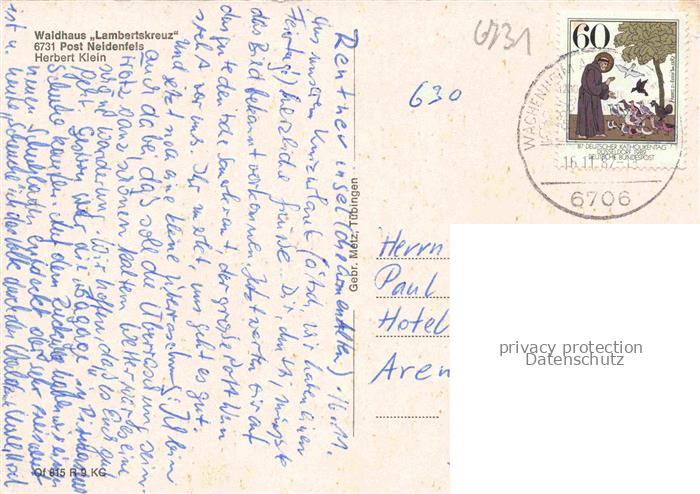 74047346 alte Postkarte Neidenfels Pfalz Waldhaus Lambertskreuz Gastraum Biergarten Waldpartie postalisch gelaufen Erhaltung siehe scans [FriedD77] KatCode: 11110007332037