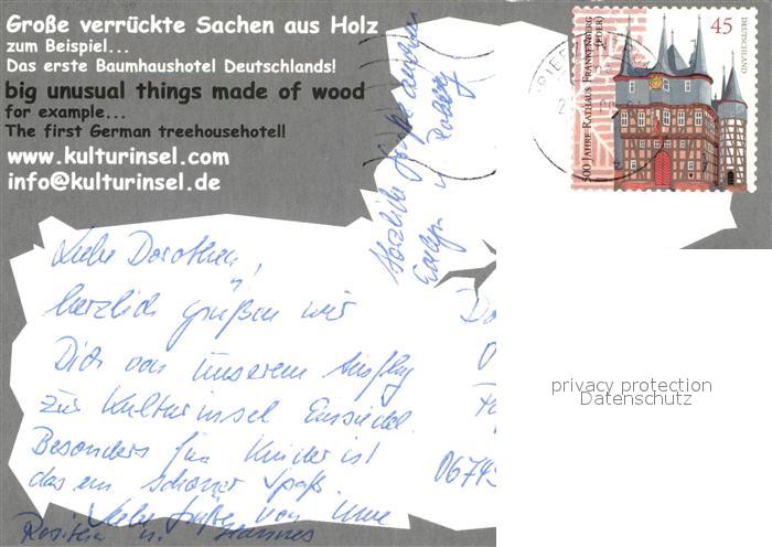72961725 alte Postkarte Neisseaue Zentendorf Kulturinsel 1. Deutsches Baumhaushotel postalisch gelaufen Erhaltung siehe scans [LiesaD40] KatCode: 11110014284265