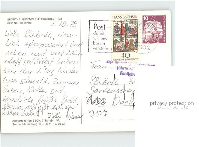 72360911 alte Postkarte Nellingen Alb Ruit Jugendleiterschule postalisch gelaufen Erhaltung siehe scans KatCode: 11110008425084