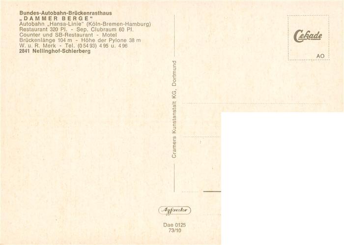 73924608 Nellinghof-Schierberg BAB Brueckenrasthaus Dammer Berge postalisch nicht gelaufen Erhaltung siehe scans [FriedD77] KatCode: 11110003460007