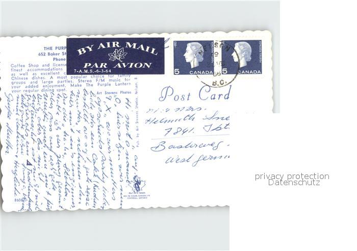 old postcard Nelson British Columbia Coffe Shop postalisch gelaufen Erhaltung siehe scans