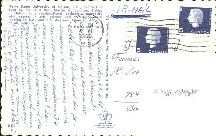 old postcard Nelson British Columbia Notre Dame University postalisch gelaufen Erhaltung siehe scans