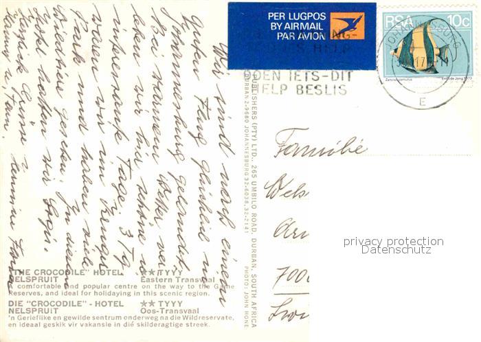 alte Postkarte Nelspruit Crocodile Hotel Swimmingpoll Restaurant postalisch gelaufen Erhaltung siehe scans [WerneD78]