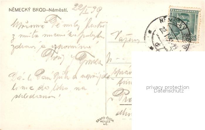 73849933 Nemecky-Brod Havlickuv Brod Deutsch-Brod CZ Namesti Stadtplatz Brunnen postalisch gelaufen Erhaltung siehe scans [FriedD77] old postcard Frie Katcode 11520