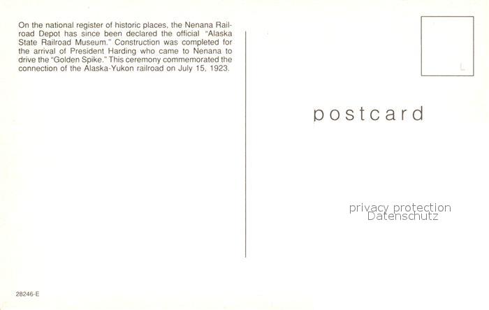 73333553 Nenana Railroad Depot Alaska State Railroad Museum postalisch nicht gelaufen Erhaltung siehe scans [FriedD77] KatCode: 14140020000000