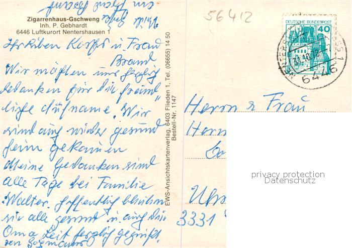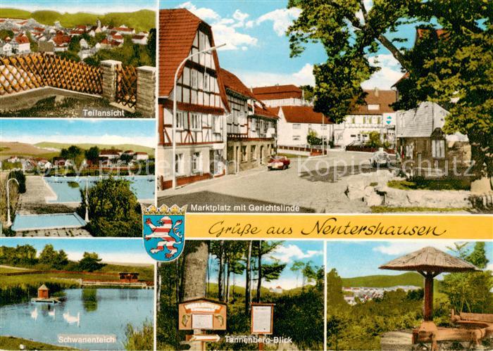 73854083 alte Postkarte Nentershausen Hessen Teilansicht Schwanenteich Marktplatz mit Gerichtslinde Tannenbergblick Panorama postalisch gelaufen Erhaltung siehe scans [WerneD78] KatCode: 11110006632013