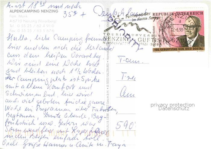 72847091 alte Postkarte Nenzing Vorarlberg Alpencamping postalisch gelaufen Erhaltung siehe scans [NatalD47] KatCode: 11390341080116