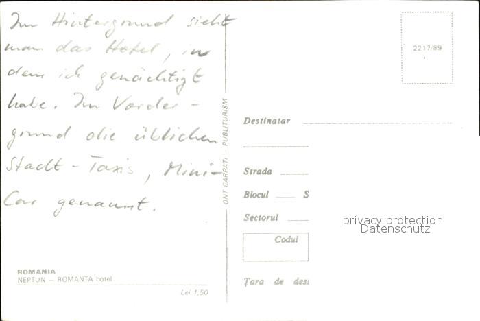 Neptun Romanta Hotel postalisch nicht gelaufen Erhaltung siehe scans [WerneD78]