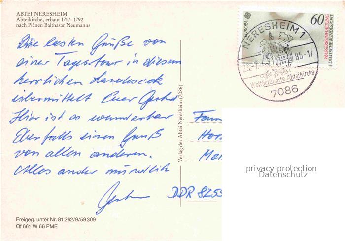 74022239 alte Postkarte Neresheim Abtei Abteikirche 18. Jhdt. postalisch gelaufen Fliegeraufnahme Erhaltung siehe scans [FriedD77] KatCode: 11110008136045