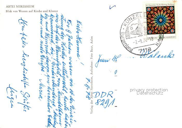 72965821 alte Postkarte Neresheim Abtei Fliegeraufnahme Kirche Kloster postalisch gelaufen Erhaltung siehe scans [LiesaD40] KatCode: 11110008136045