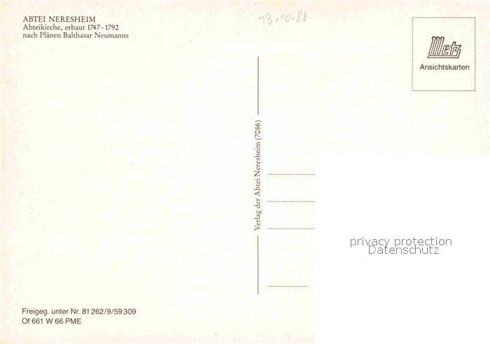 72831764 Neresheim Abtei Kirche 18. Jhdt. Fliegeraufnahme postalisch nicht gelaufen Erhaltung siehe scans [FriedD77] KatCode: 11110008136045