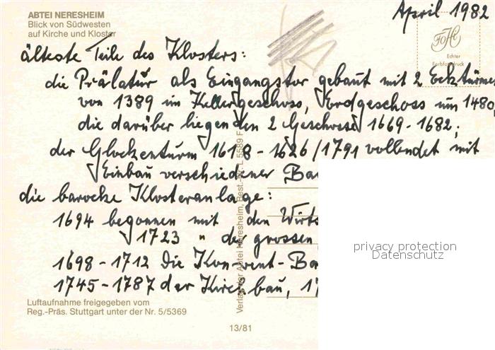 72785221 Neresheim Abtei Kirche Kloster Fliegeraufnahme postalisch nicht gelaufen Erhaltung siehe scans [FriedD77] KatCode: 11110008136045
