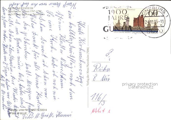 72591599 alte Postkarte Neresheim Abtei mit Abteikirche Fliegeraufnahme postalisch gelaufen Erhaltung siehe scans [WerneD78] KatCode: 11110008136045