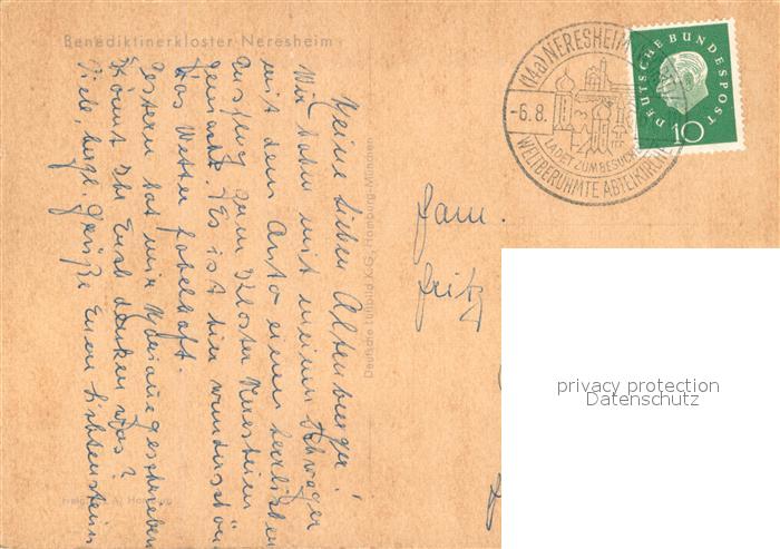 73705372 alte Postkarte Neresheim Benediktinerkloster postalisch gelaufen Fliegeraufnahme Erhaltung siehe scans [FriedD77] KatCode: 11110008136045